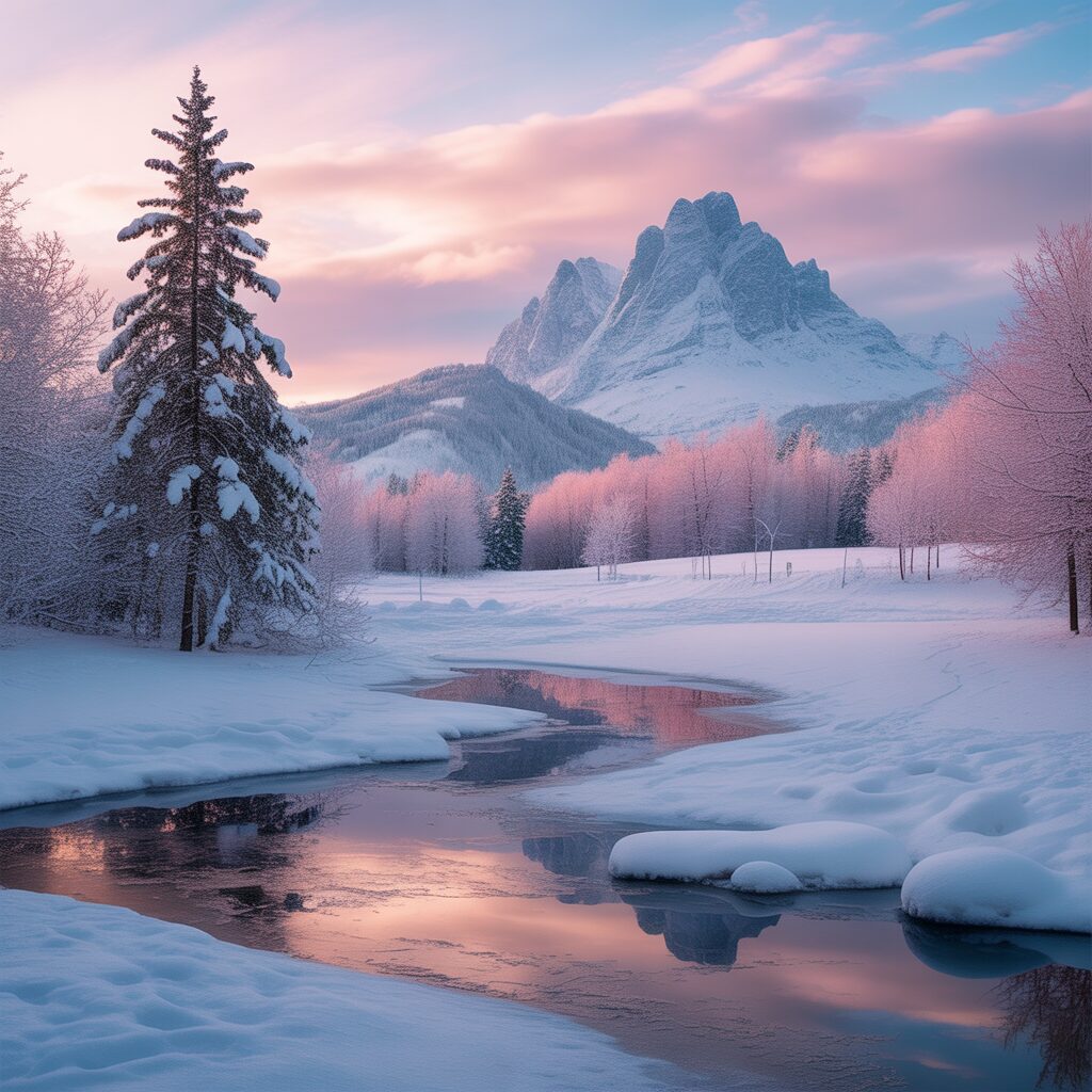 Soft pinks, blues, and creams in snowy landscapes create a dreamy holiday vibe. These gentle colors make your screen feel serene and festive at the same time.