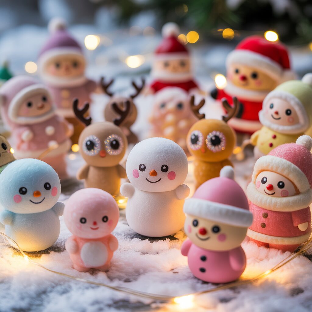 Adorable characters like smiling snowmen, reindeer, or tiny Santas in soft tones bring joy with a delicate style. They balance cuteness and aesthetic appeal perfectly.