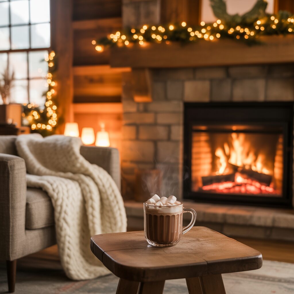 Illustrations of fireplaces, hot cocoa, and warm blankets evoke comfort. These wallpapers create a cozy, aesthetically pleasing holiday mood.
