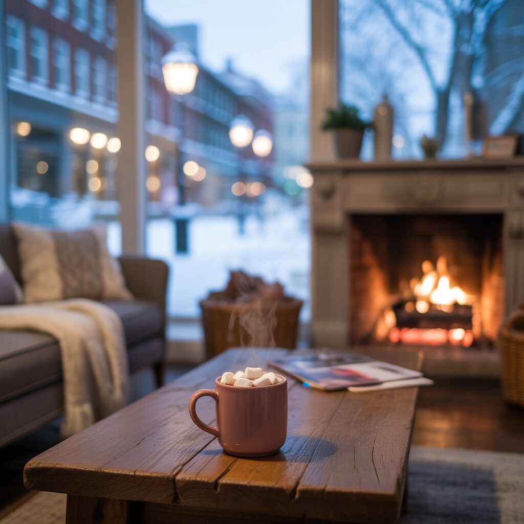 Fireplaces, hot cocoa, and snow-covered streets bring warmth and comfort. These wallpapers capture the serene and inviting essence of winter holidays.