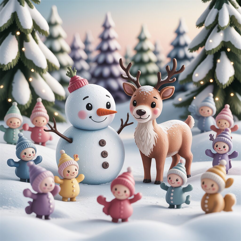 Snowmen, reindeer, and small holiday characters in soft color palettes bring playful charm. These wallpapers combine cuteness with aesthetic sophistication.