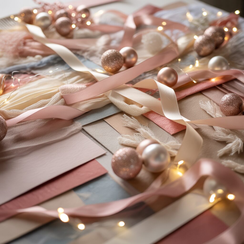 Combining ribbons, ornaments, lights, and pastel textures creates a rich, layered aesthetic. Collage wallpapers are visually dynamic while keeping a stylish holiday feel.