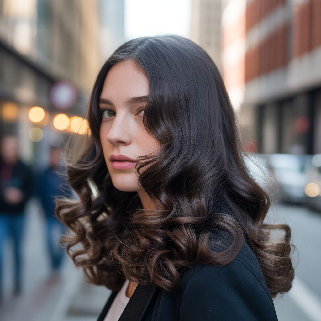 Why it’s different: Long, sleek hair can emphasize squareness, but soft curls at the ends draw focus downward and add femininity. Unlike bouncy curls, these remain subtle and elegant.