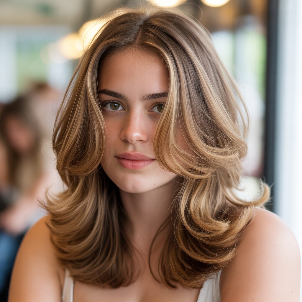 How it’s created: Hair is cut to shoulder length with blended layers. Styling with waves or curls gives dimension and avoids sharp lines.