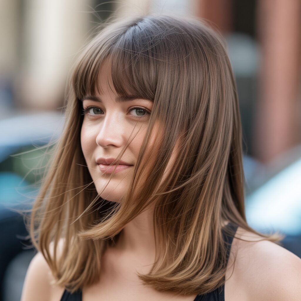 Why it’s different: Unlike heavy bangs that weigh down thin hair, curtain bangs blend seamlessly into layers, giving the illusion of fullness around the face.