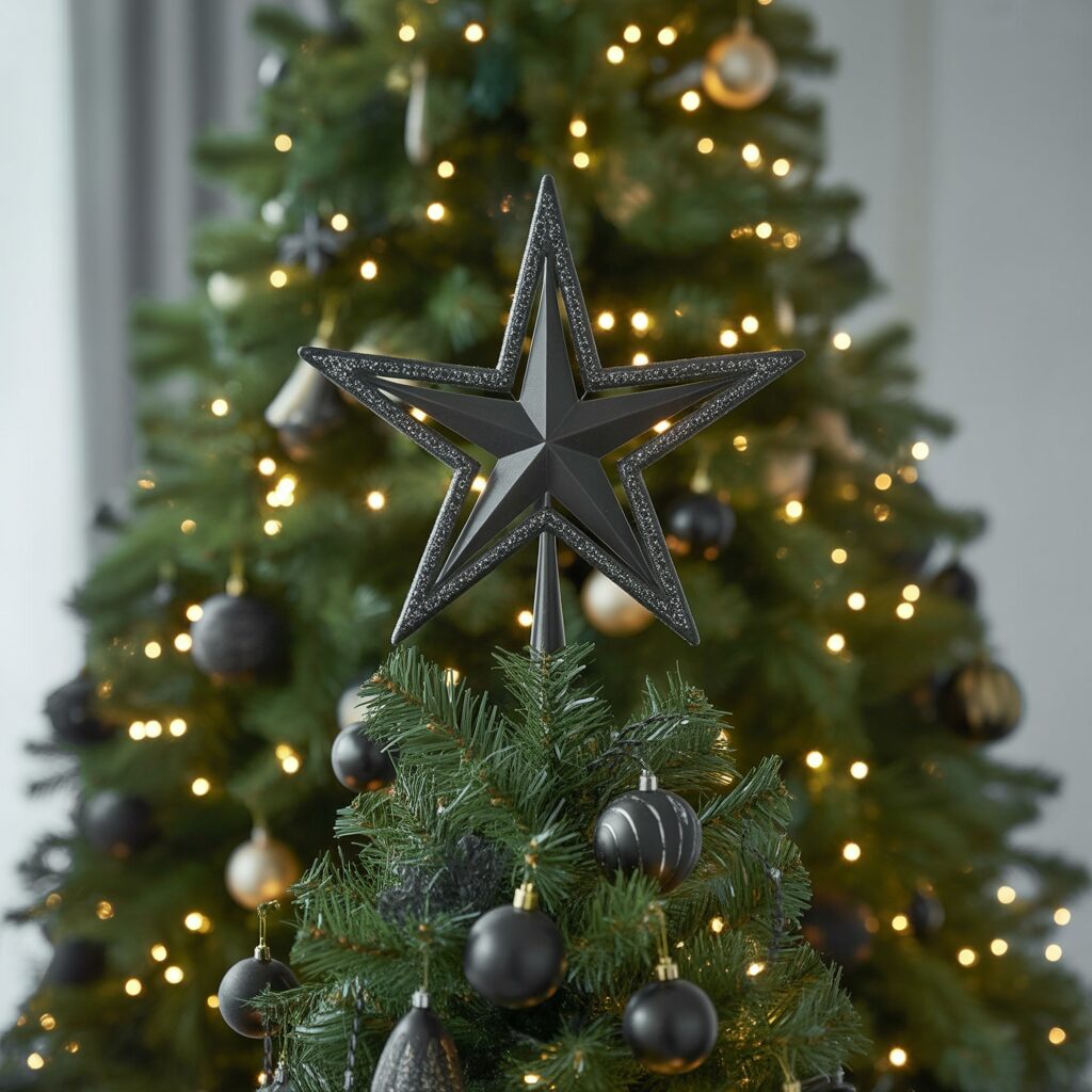 Choose a black star, bow, or angel. A coordinating topper complements the theme and adds a stylish finishing touch.