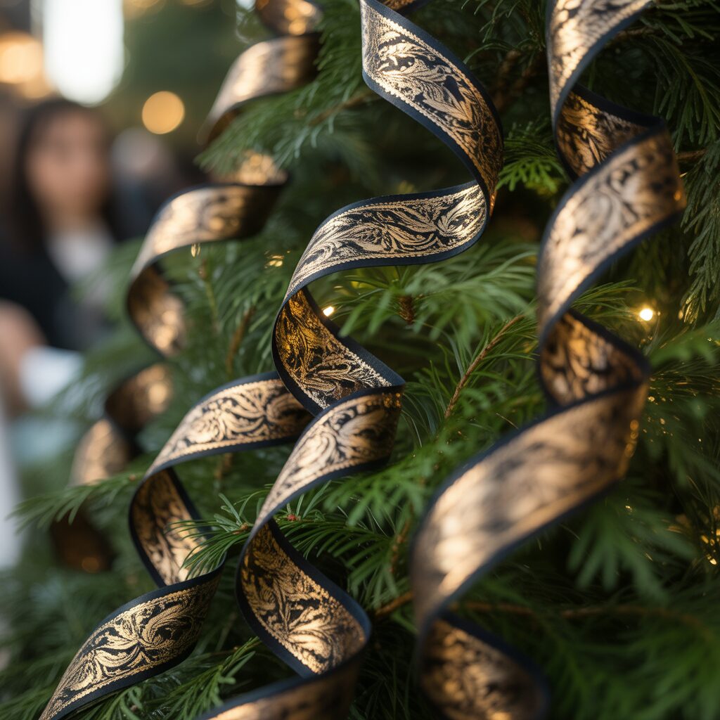 Drape black and gold patterned ribbons throughout the branches. Ribbons add texture, movement, and visual interest to the tree.