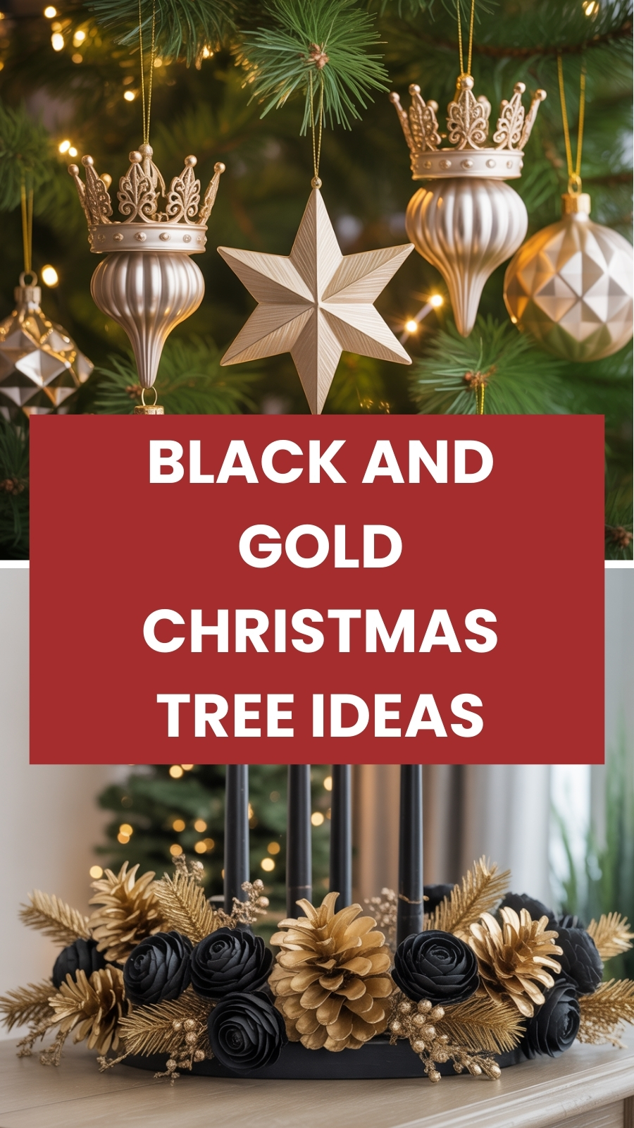 A black and gold Christmas tree exudes drama, elegance, and festive luxury. By combining gold ornaments, metallic accents, and thoughtful lighting, you can create a tree that is both striking and sophisticated. These ideas help make your holiday centerpiece bold, glamorous, and unforgettable.