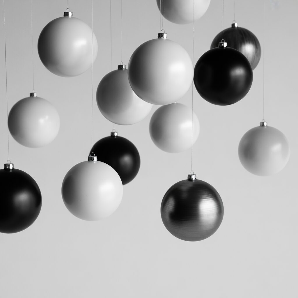 Stick to black, white, or silver ornaments for a clean, modern appearance. Minimalist décor emphasizes simplicity while maintaining a striking visual impact.