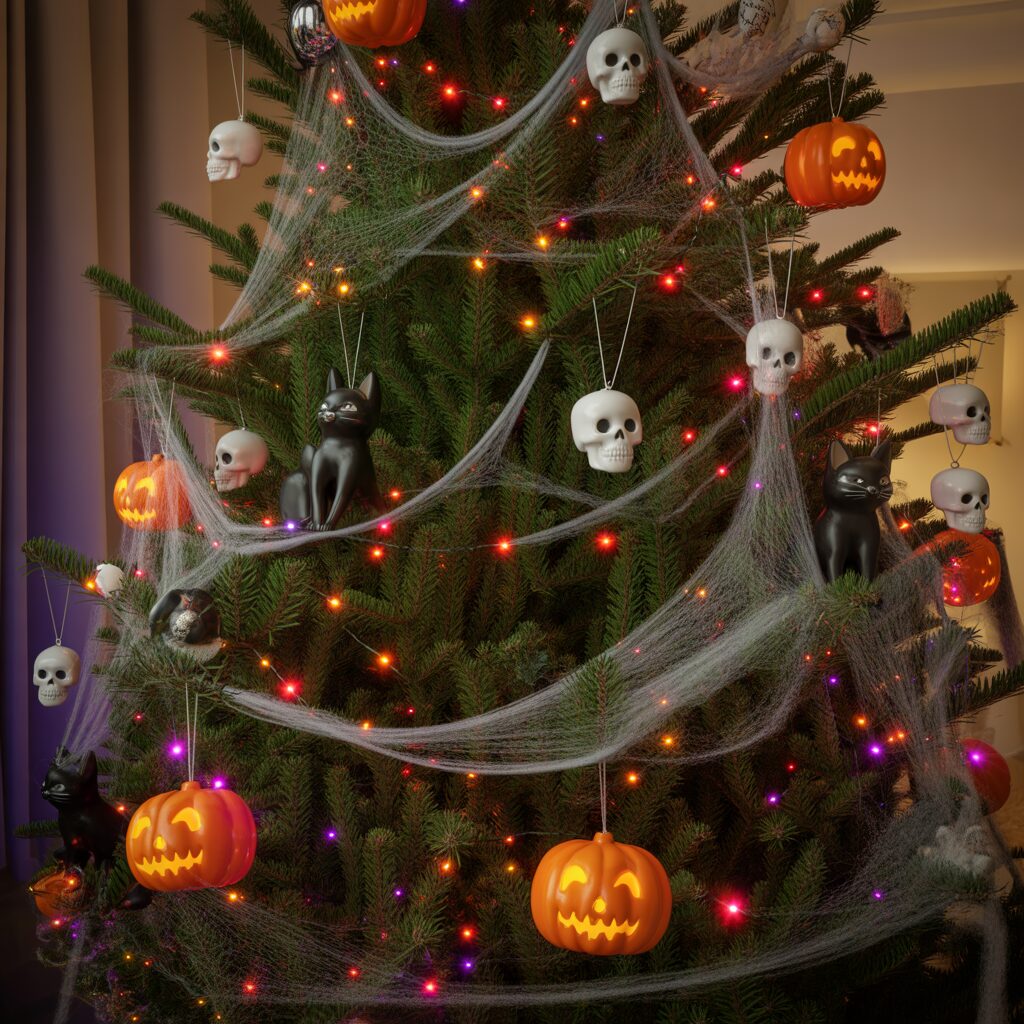 Incorporate elements like skull ornaments, black cats, or spider decorations for a quirky and unconventional holiday tree. This adds a playful, edgy charm to the season.