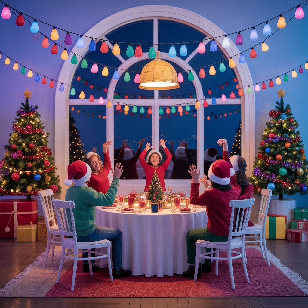 Bluey-themed Christmas parties with colorful decorations and lights create a lively atmosphere. These wallpapers celebrate the fun and festive side of the season.