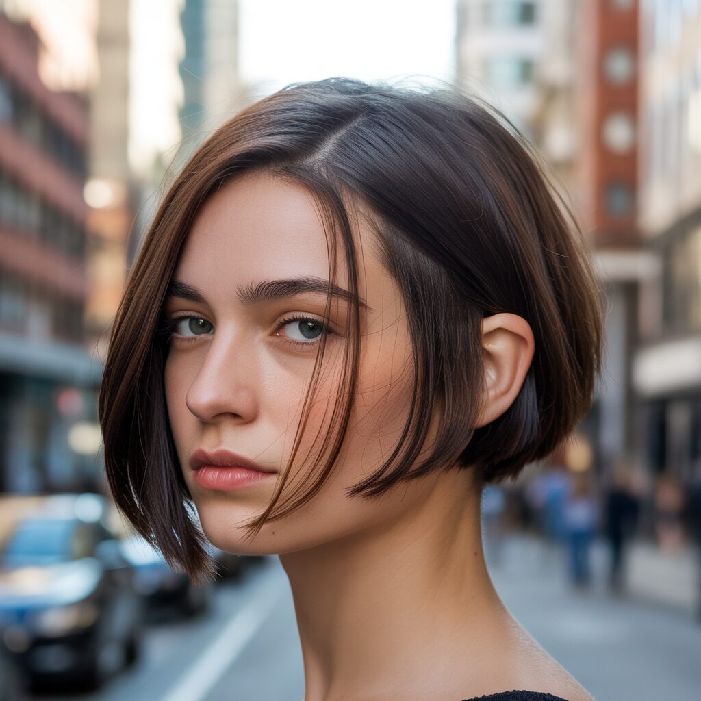 The asymmetrical bob features one side slightly longer than the other, adding a contemporary twist to a classic cut. Unlike traditional bobs, it gives a bold and artistic edge, making it ideal for women who want a standout look. This style draws inspiration from high-fashion runways and urban street style, combining creativity and structure for a striking, face-flattering silhouette.
