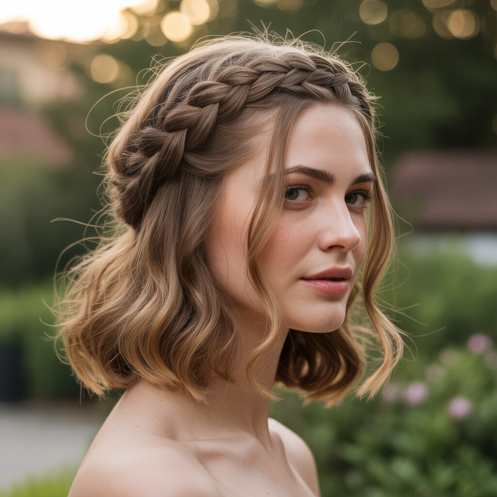 In this style, braids are wrapped around the crown area, almost like a headband, with the rest of the hair left down. Unlike regular half up styles, it creates a regal and romantic effect. The inspiration comes from Greek and Roman hairstyles, where crown braids symbolized grace, power, and femininity.