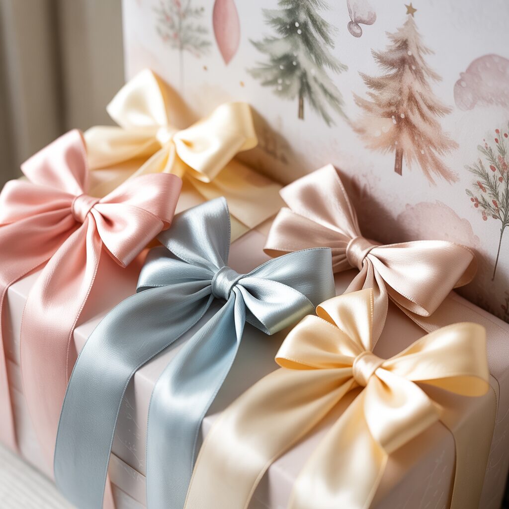 Soft pink, blue, or cream bows provide a gentle and trendy holiday look. Pastel wallpapers offer a calm and aesthetic Christmas feel.