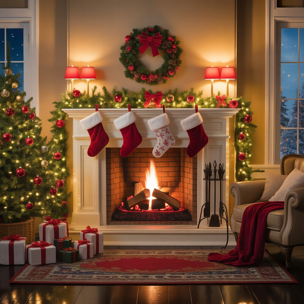 Fireplaces with stockings and glowing lights create a warm holiday atmosphere. These wallpapers bring comfort and traditional Christmas charm to your computer screen.