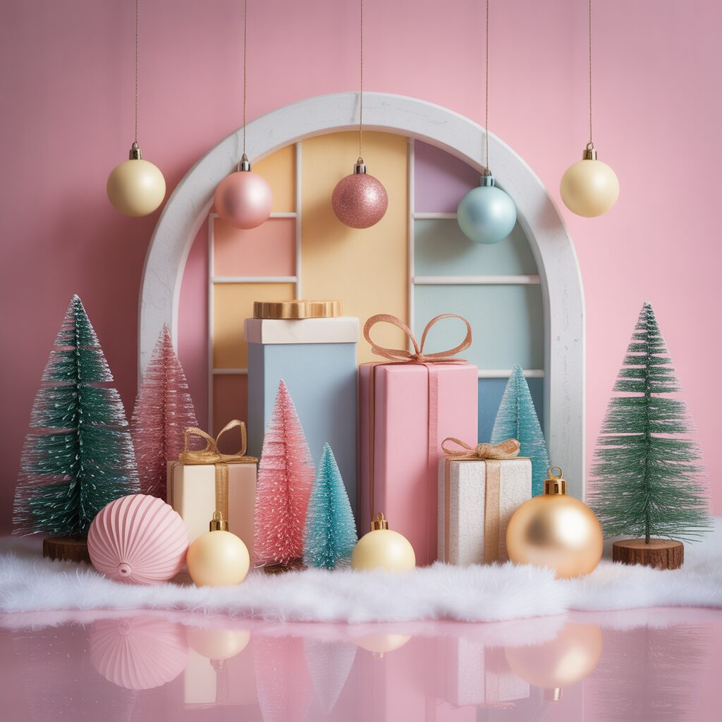Soft pinks, blues, and creams provide a gentle and trendy festive look. Pastel wallpapers are perfect for subtle yet cheerful Christmas computer backgrounds.