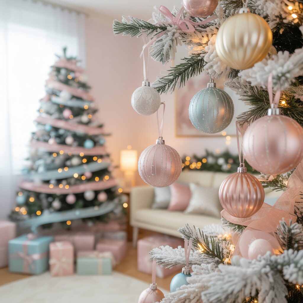 Soft pinks, blues, and creams create a gentle and trendy holiday feel. Pastel wallpapers offer a subtle yet visually appealing festive backdrop.