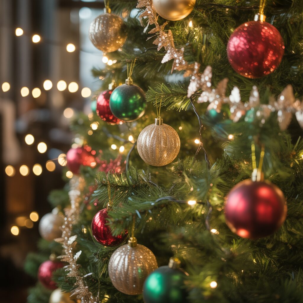 Detailed shots of decorated trees with twinkling lights highlight the beauty of ornaments. They add a vibrant and joyful holiday touch to your phone.