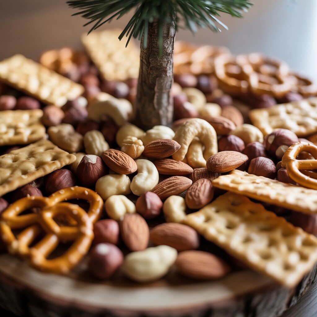 Sprinkle nuts, pretzels, or crackers around the tree. These elements fill gaps and provide additional textures for a well-rounded board.