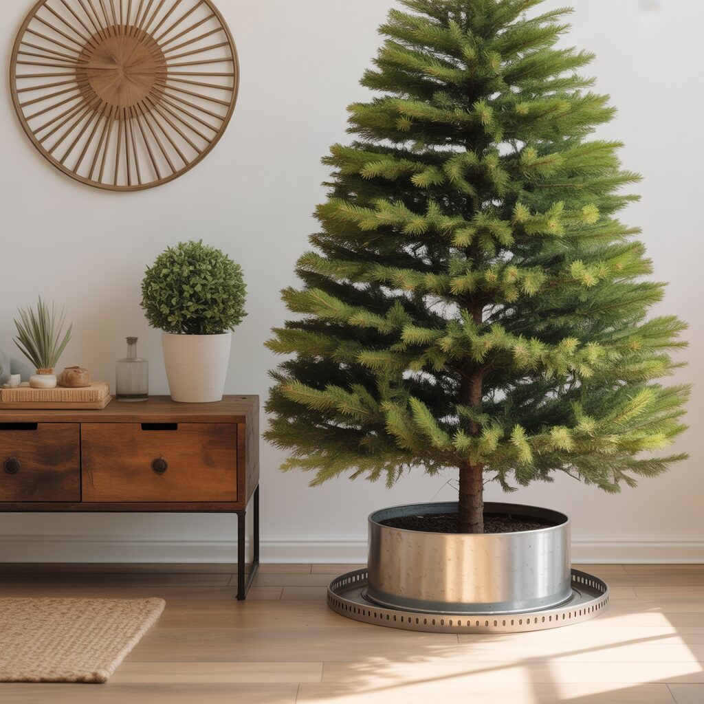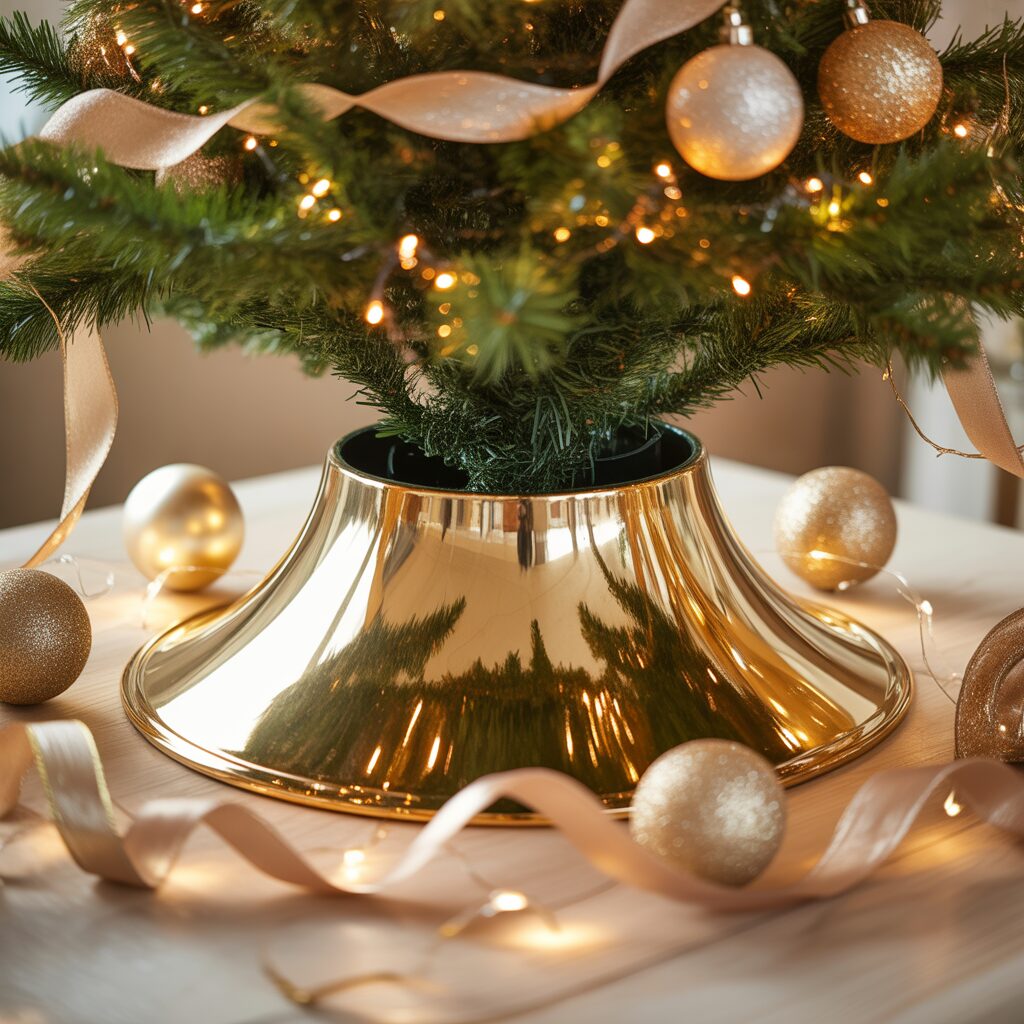 Use a metal tree collar for a sleek, industrial look. It pairs well with modern décor and adds a clean, contemporary touch to your tree base.