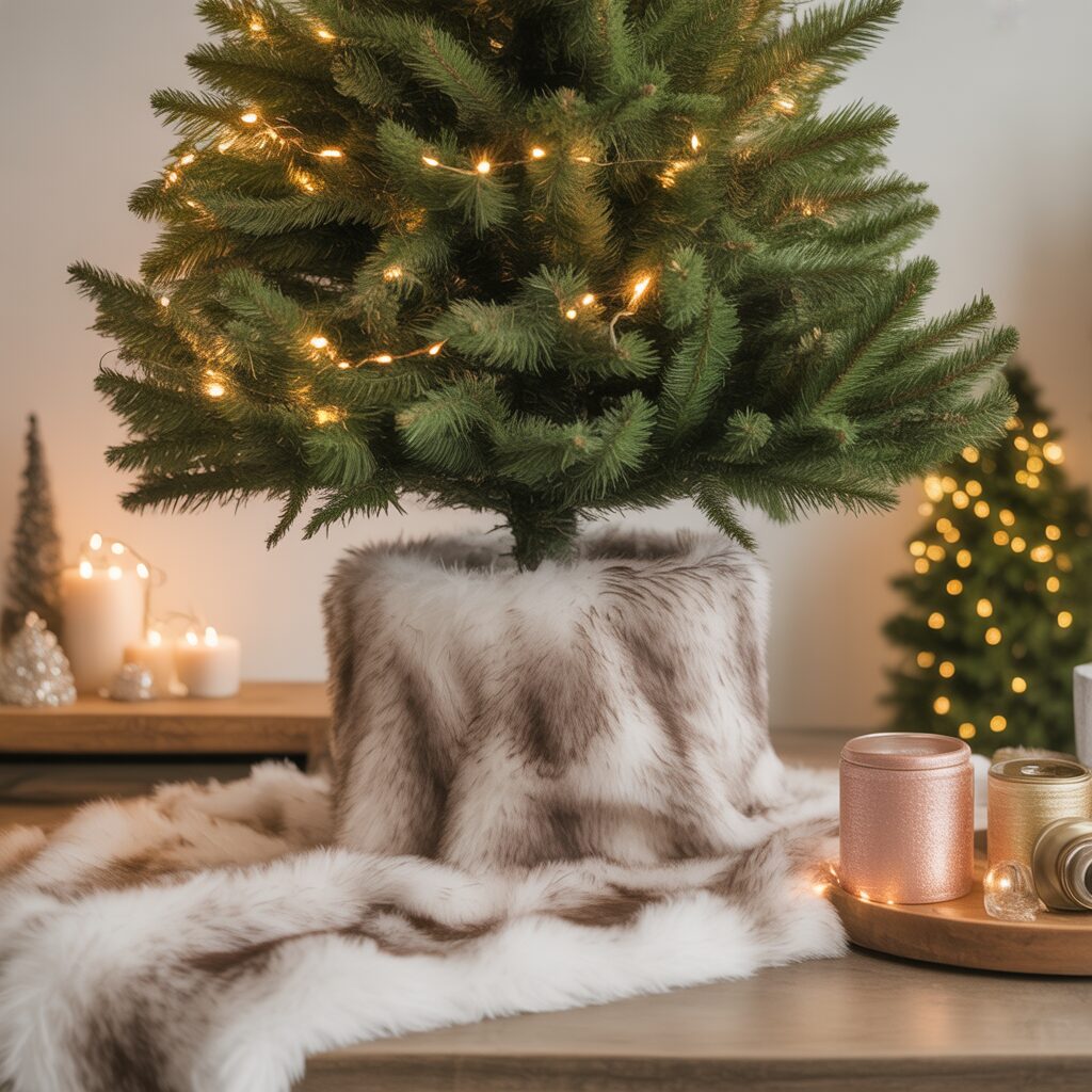 Wrap your tree stand with fabric or faux fur for a cozy, soft appearance. This option adds texture and warmth to your holiday setup.