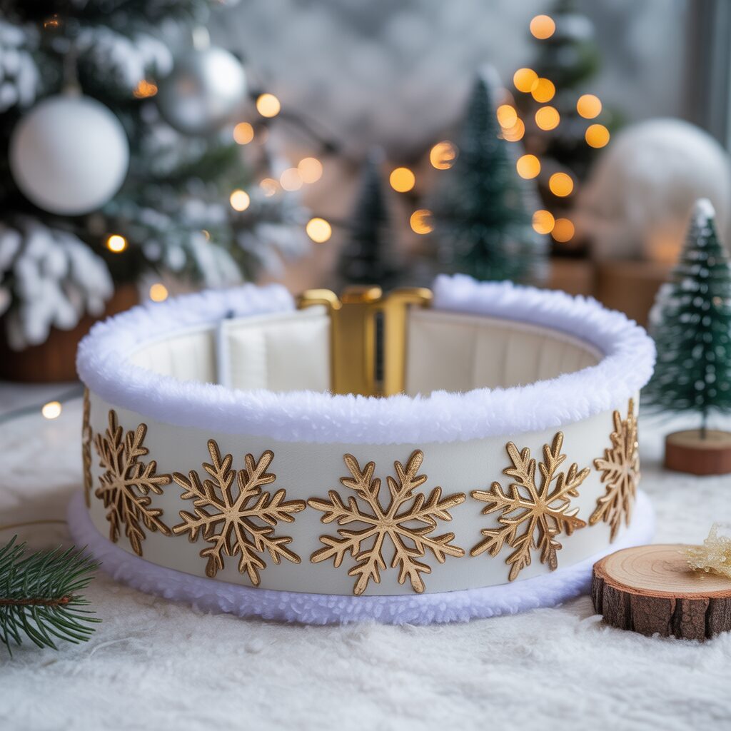 Gold or silver collars add a touch of elegance and sparkle. Metallic finishes complement glamorous ornaments and create a luxurious holiday display.