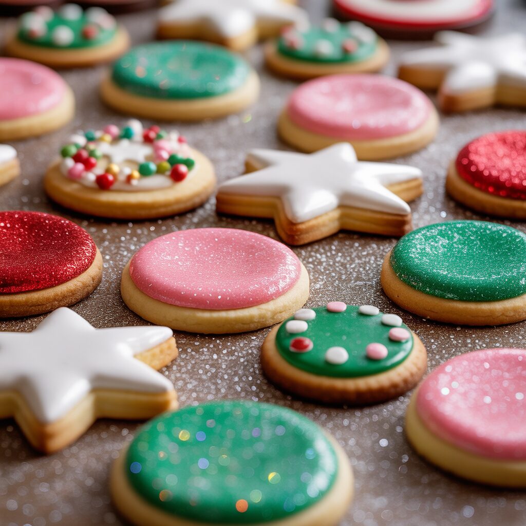Top cookies with glittery sugar or holiday-themed sprinkles. The shimmer adds a magical touch and makes each cookie sparkle.
