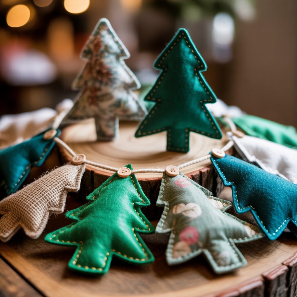 Use felt or fabric scraps to make soft, textured trees. Sew or glue pieces together for ornaments, garlands, or tabletop trees.