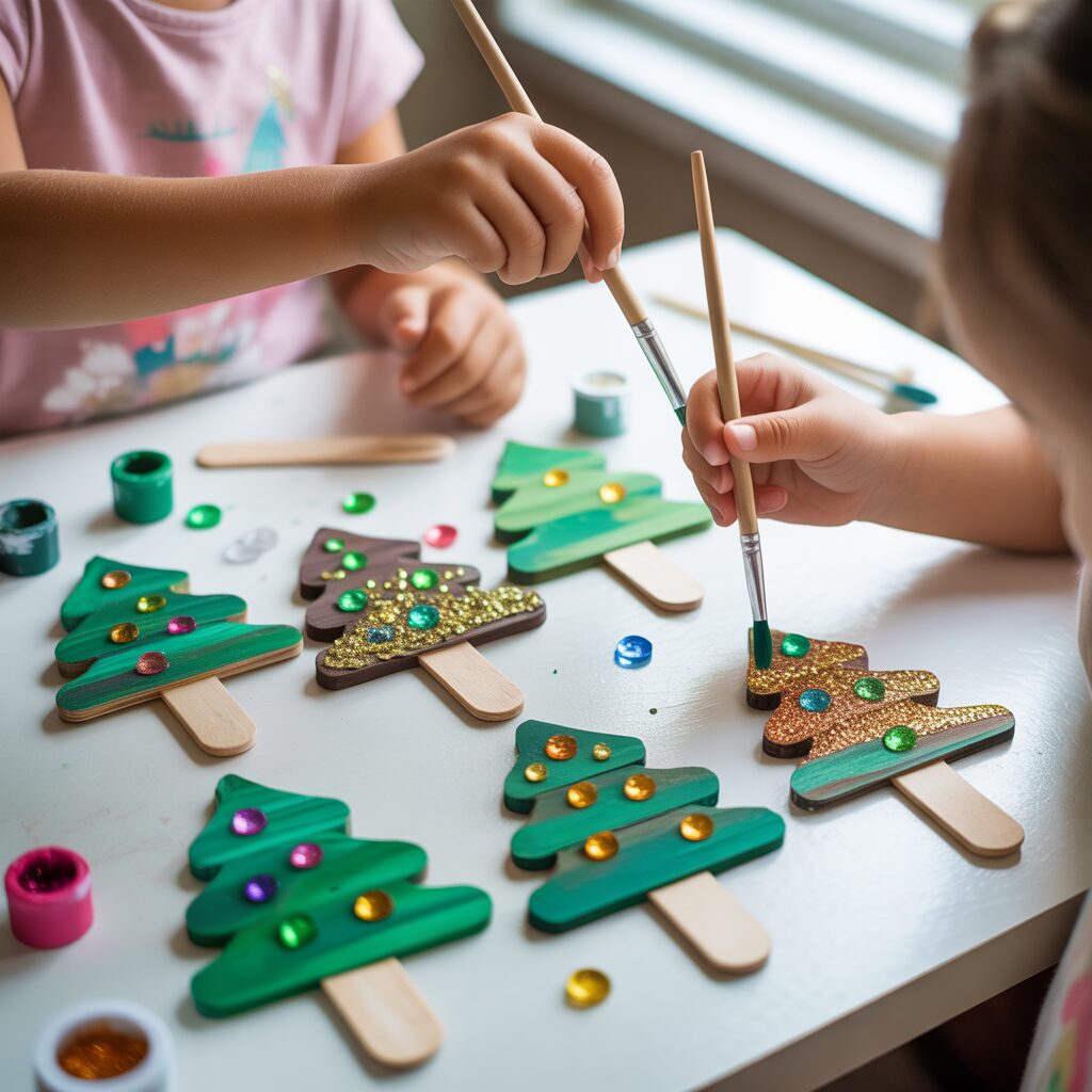 Assemble popsicle sticks in a tree shape and decorate with paint, glitter, or beads. These crafts are easy and perfect for kids.