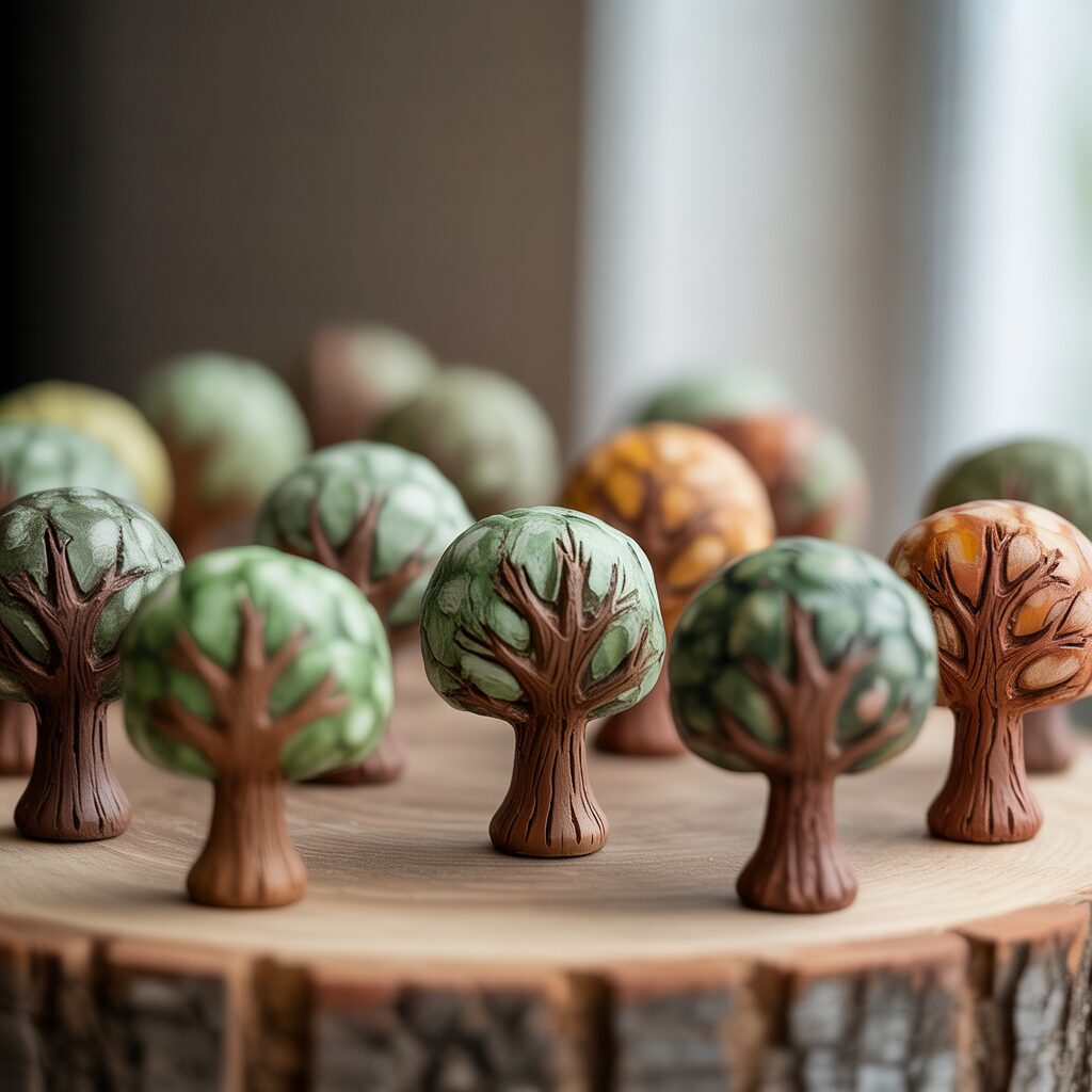 Sculpt small trees from clay or air-dry clay and paint them. Mini clay trees are sturdy, customizable, and perfect for table décor.