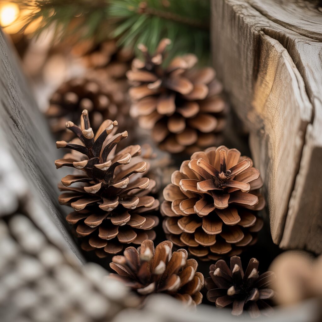 Place pinecones in gaps for a natural, rustic touch. They bring earthy texture and complement traditional holiday themes.