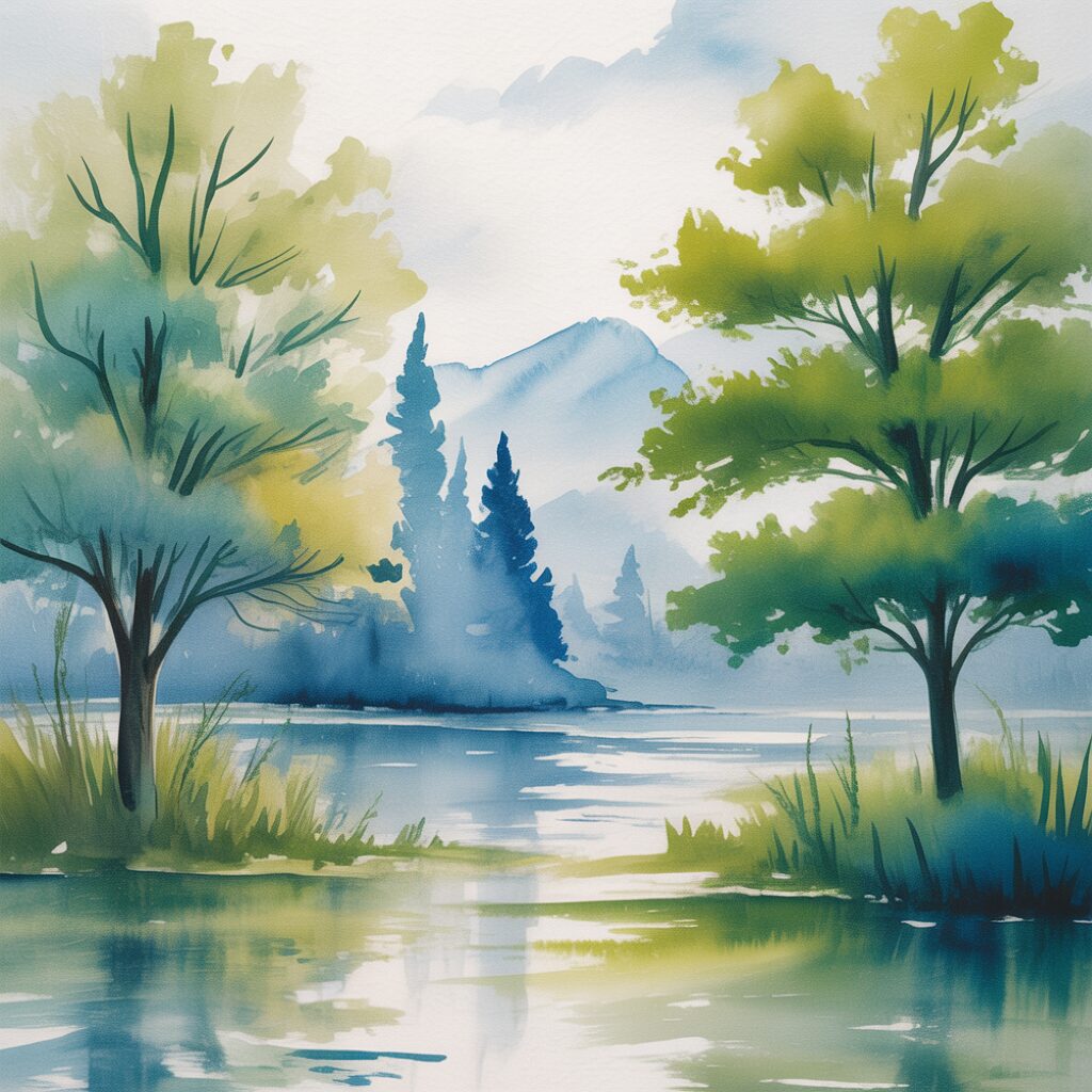 Use soft, flowing watercolor techniques for a delicate and dreamy look. Blend greens and blues for a subtle, artistic effect.
