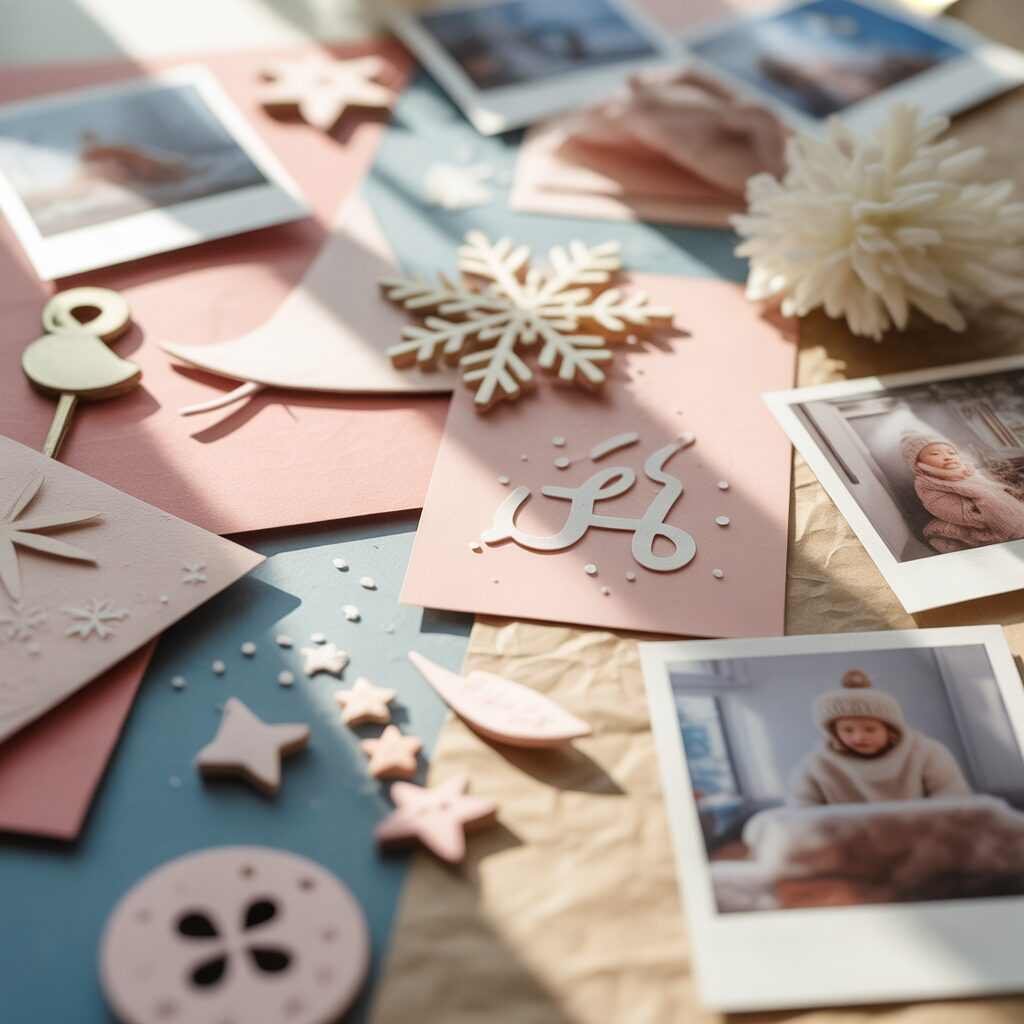 Soft pinks, blues, and creams bring a trendy, dreamy vibe. Add minimal icons, gentle snowflakes, and cute holiday photos for a calming yet festive look.