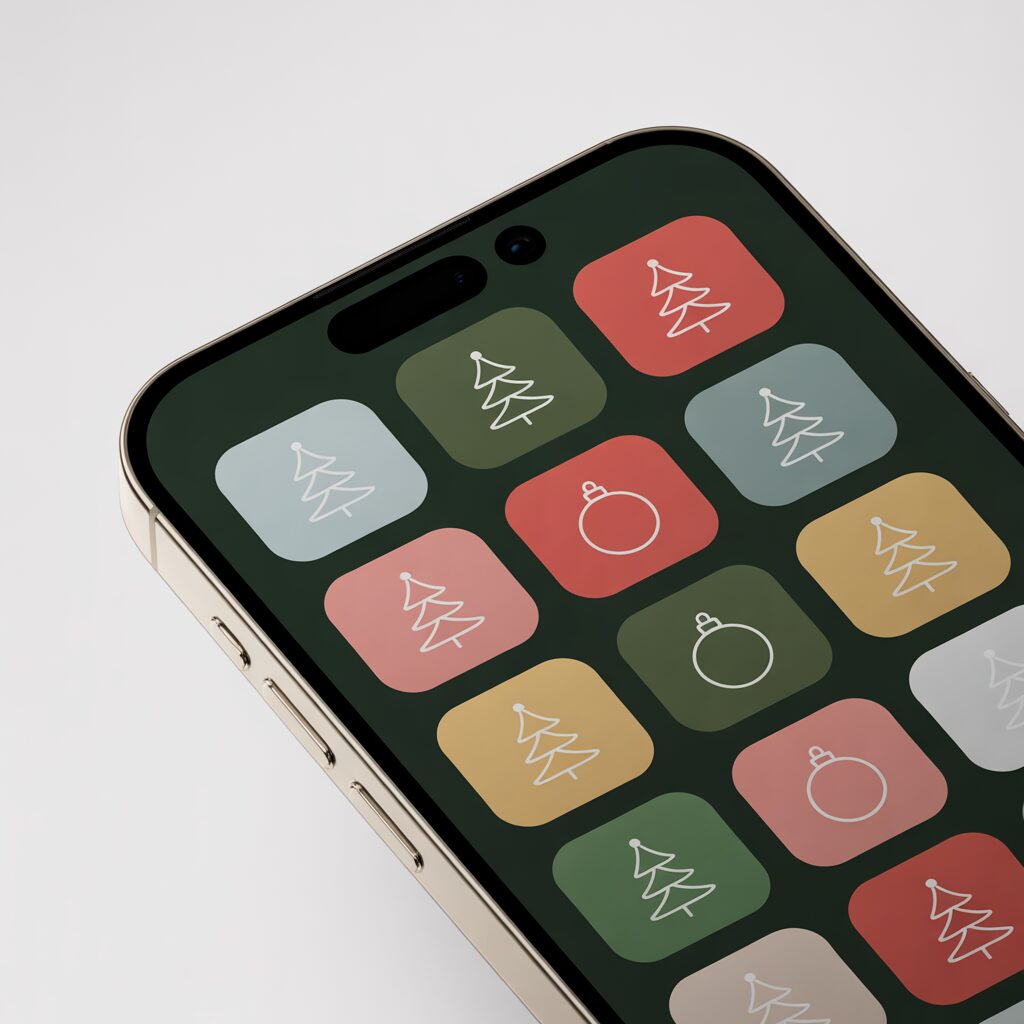 Simple outlines of trees, stars, or ornaments look clean and modern on an iPhone screen. These designs keep your home screen organized while still adding a festive touch.