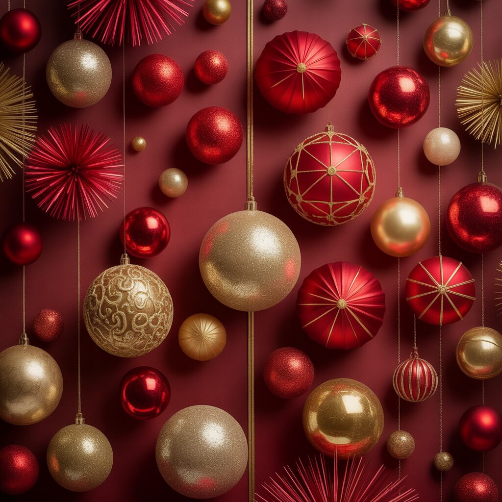 Rich reds paired with shimmering gold accents create a luxurious holiday look. These wallpapers feel polished and festive, ideal for a classy iPhone setup.