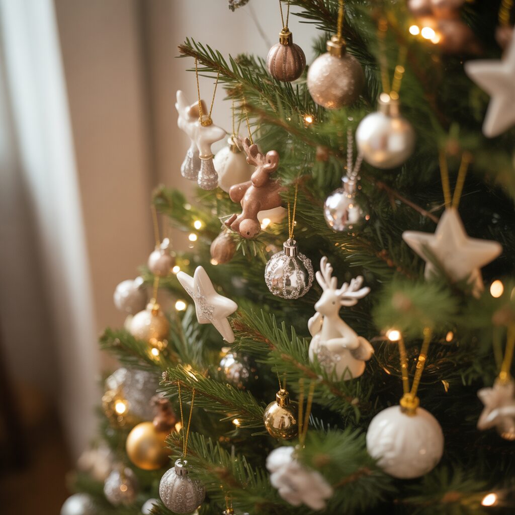 Use tiny baubles, stars, and figurines to create a delicate, adorable look. Mini ornaments keep the tree playful without overwhelming it.