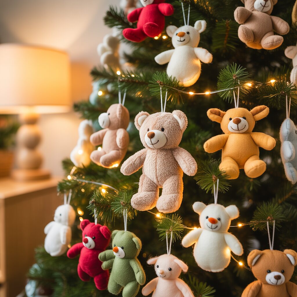 Add plush toys, felt ornaments, or stuffed animals. Soft decorations give the tree a cozy, huggable feel perfect for children’s spaces.