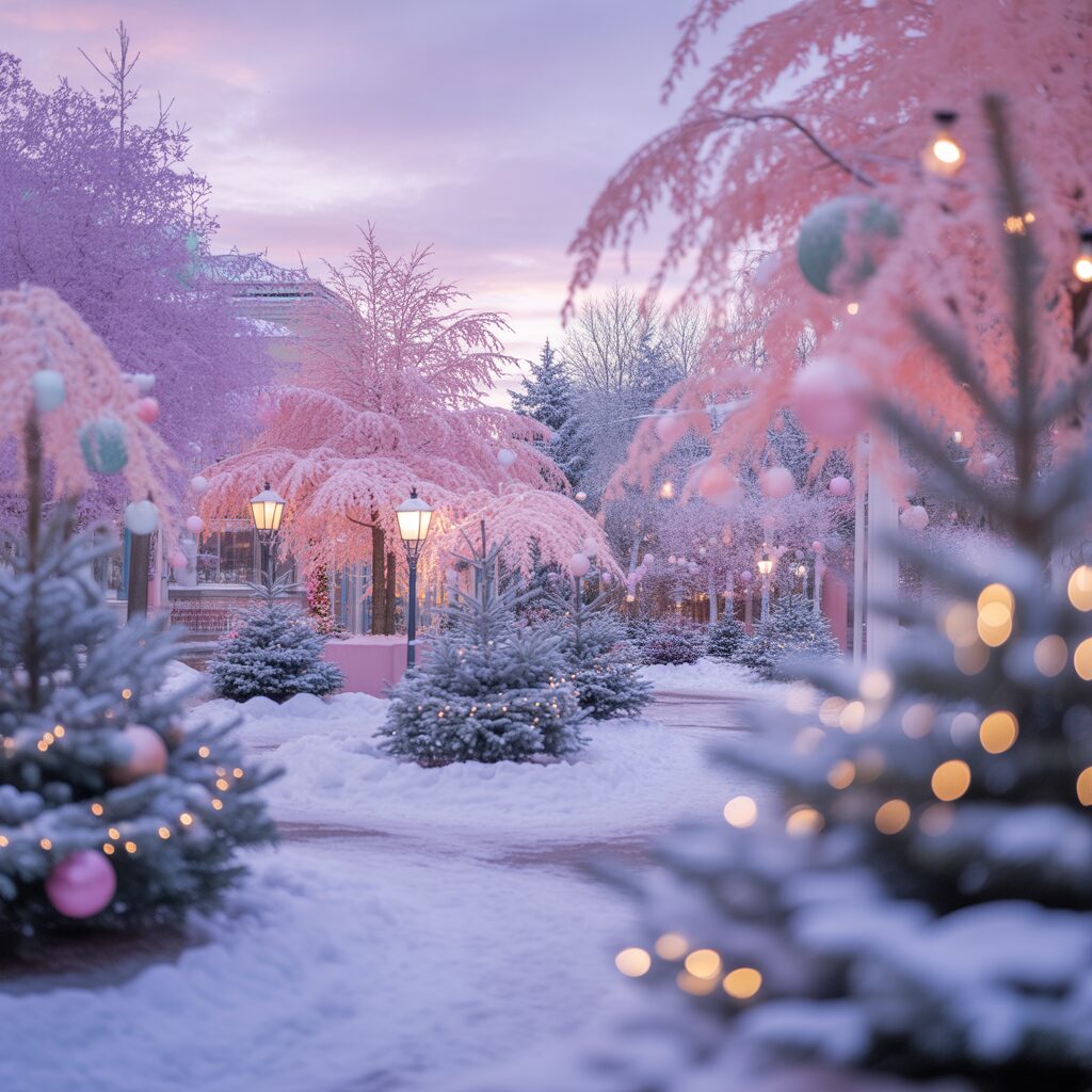 Use pastel pinks, blues, and purples for a whimsical, charming aesthetic. Soft colors create a dreamy and sweet holiday atmosphere.