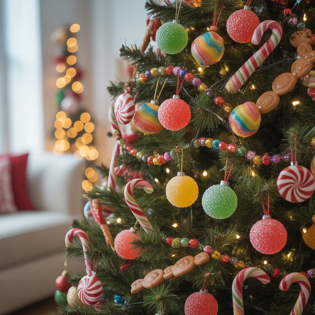 Include candy-shaped ornaments, gumdrops, and peppermint designs. Sweet-inspired decorations enhance the playful, cute vibe of the tree.