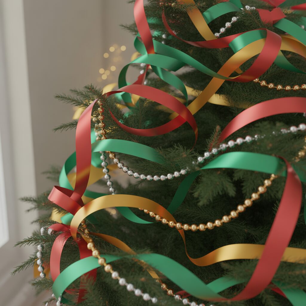 Drape colorful or patterned ribbons and garlands around the tree. These accents add texture and movement while keeping the look cheerful.