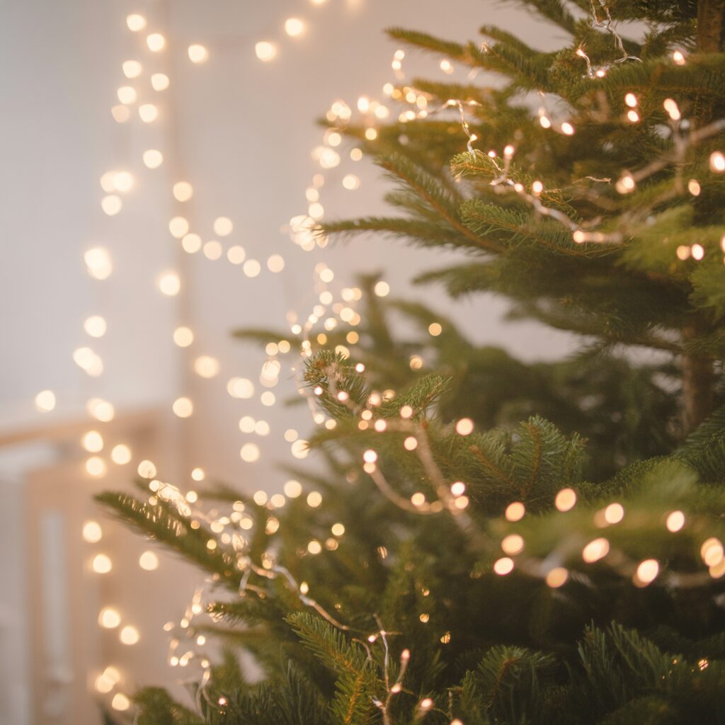Use tiny fairy lights in warm or pastel tones. Soft, twinkling lights enhance the cuteness and create a magical glow around the tree.