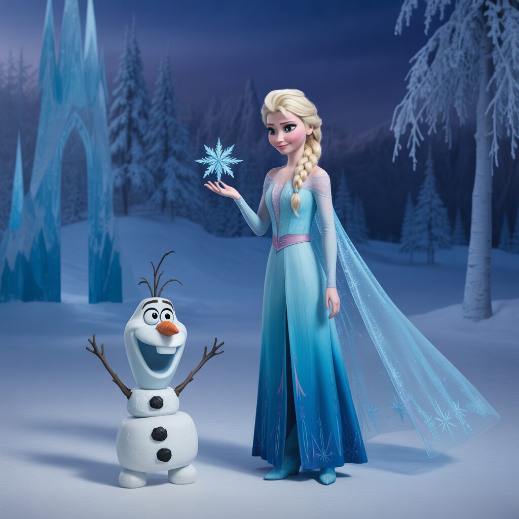 Elsa, Anna, Olaf, and the snowy landscapes of Arendelle are perfect for Christmas. Cool tones and sparkling ice effects bring a magical and serene winter feel.