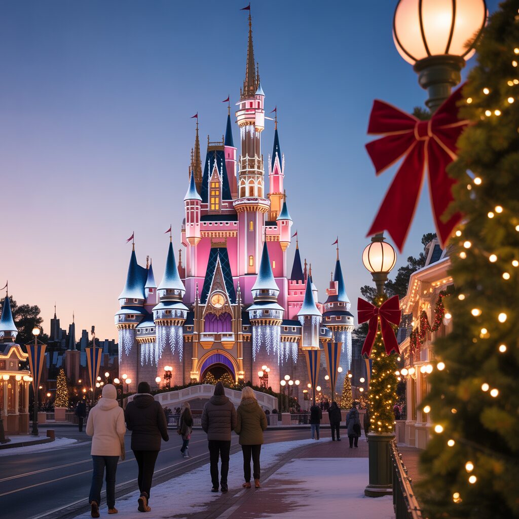 Images of Disneyland or Disney World decorated for the holidays highlight sparkling lights and magical decor. These wallpapers feel enchanting and capture the wonder of the season.