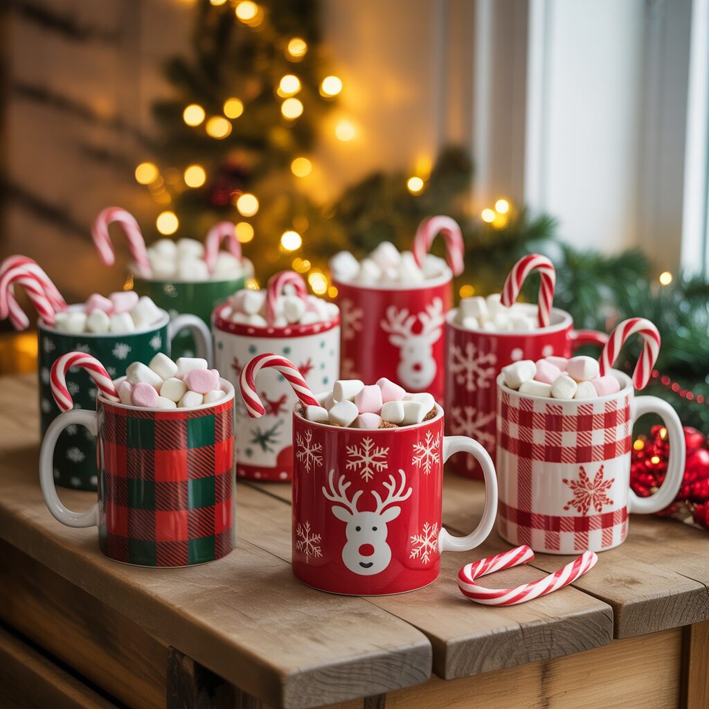 Pick festive mugs and fill them with hot cocoa packets, candy canes, or mini marshmallows. This makes a cozy and cheerful gift.