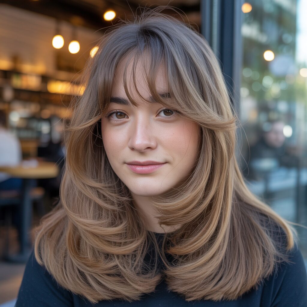 How it is different: Unlike simple long hair that can look heavy, curtain bangs paired with layers add balance by framing the forehead and cheekbones.