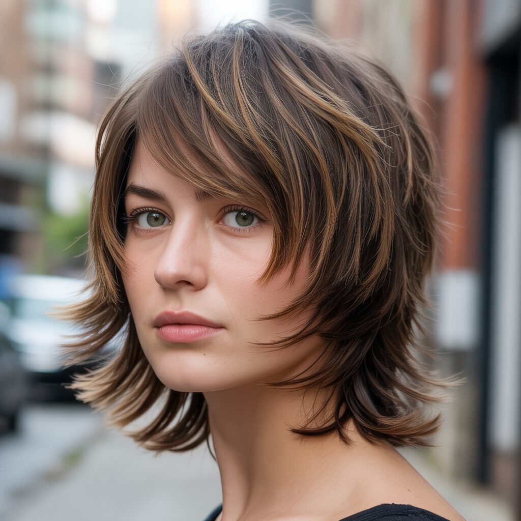 How it is different: Unlike sleek, uniform cuts, a layered shag with feathered ends gives a playful, edgy vibe. It frames the face without overwhelming it, adding angles that flatter rounder features.