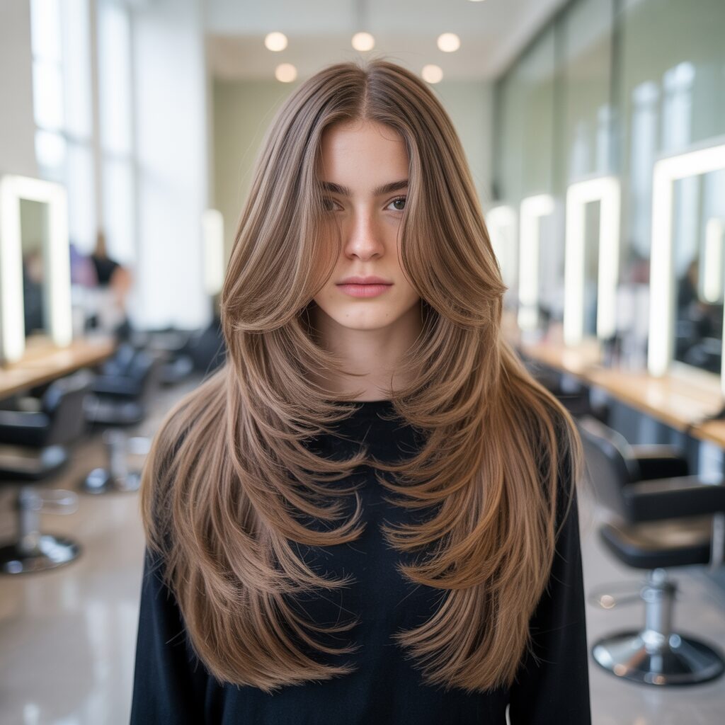 How it is different: Instead of straight layers, the V-cut creates a pointed back shape while leaving soft framing layers at the front. This elongates the face and adds dimension to long hair.