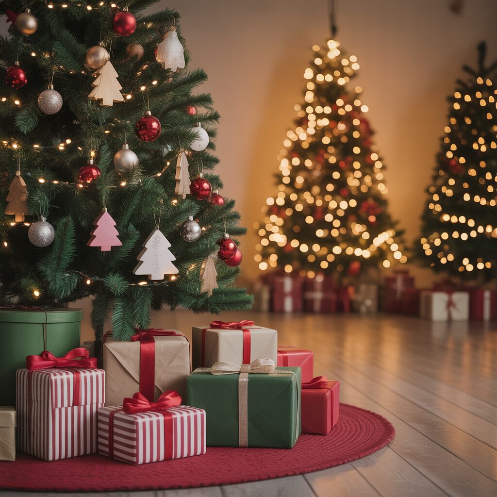 Decorated Christmas trees with twinkling lights and ornaments add joy and vibrancy. These wallpapers instantly make your screens feel festive.