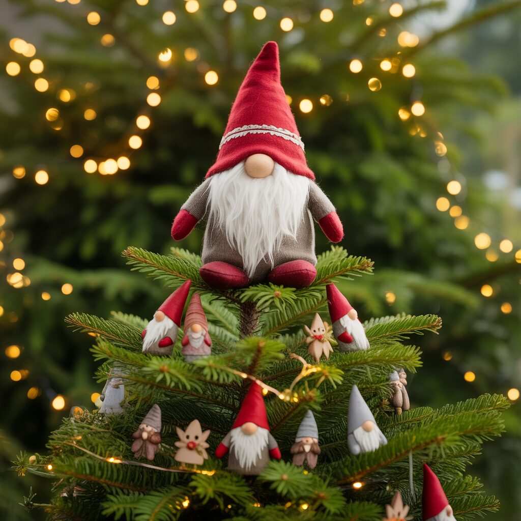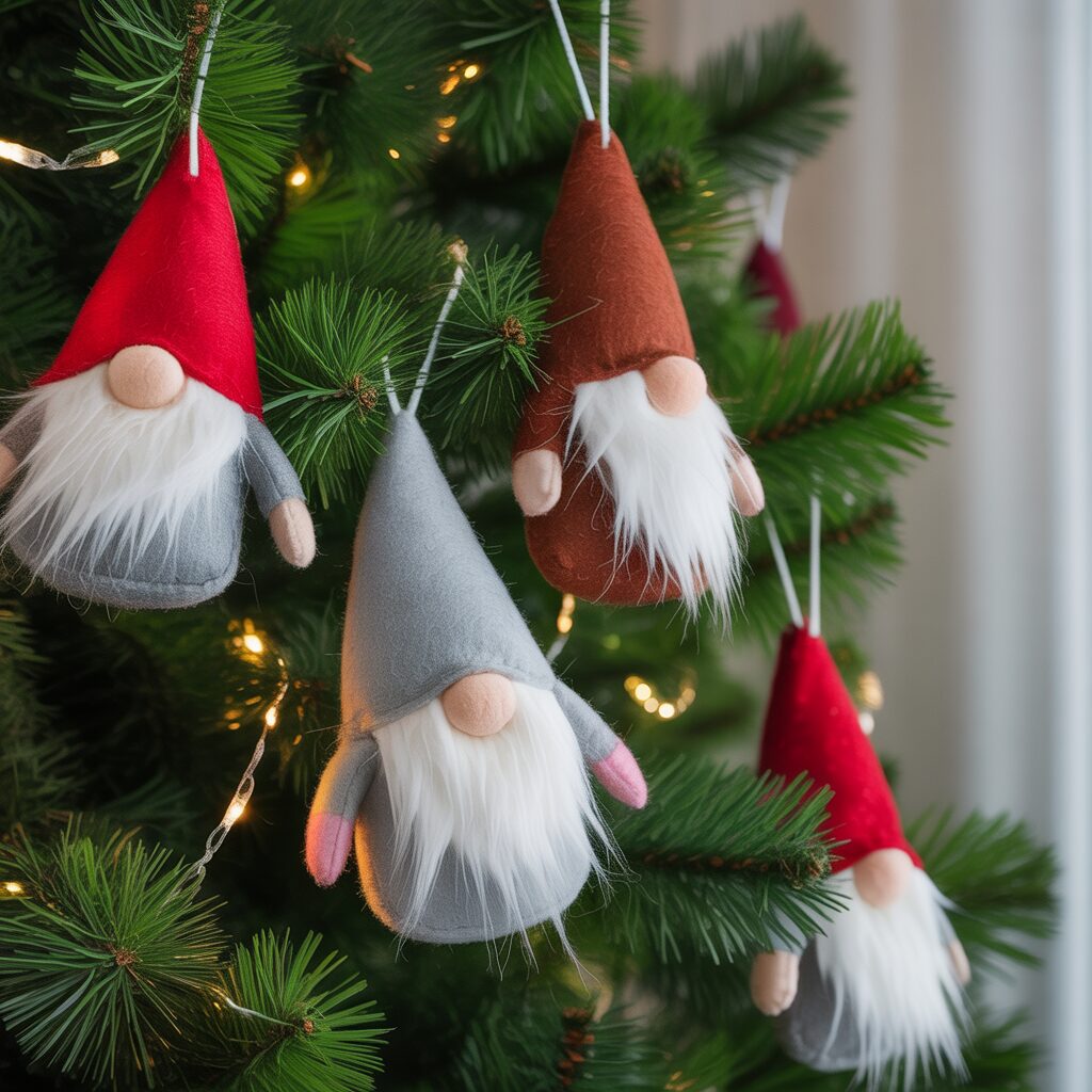 Use plush or felt gnome ornaments and decorations. Soft textures make the tree cozy and child-friendly while adding dimension.