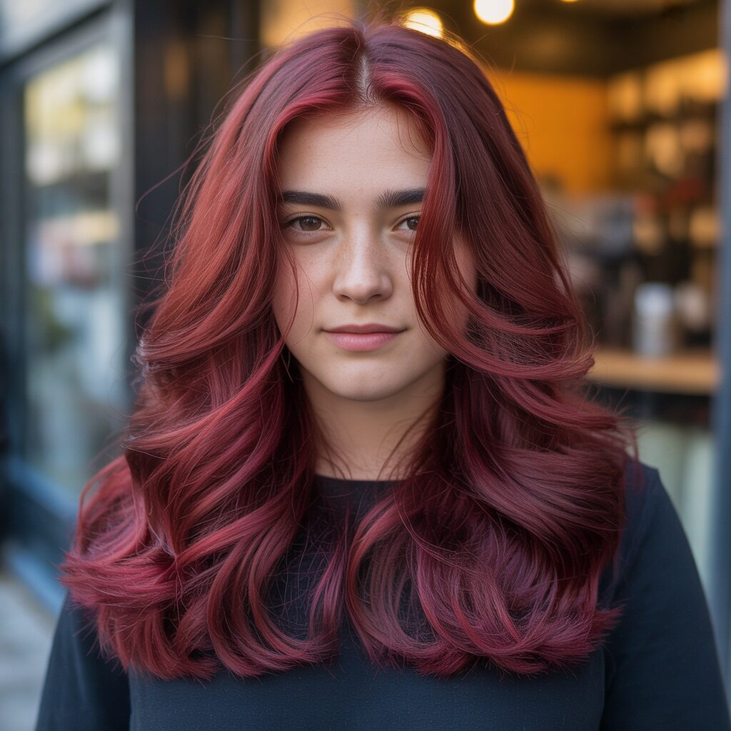 How it’s created: A dark base is enhanced with layered red and purple tones, often with shadow roots or lowlights to ensure a graceful fade.